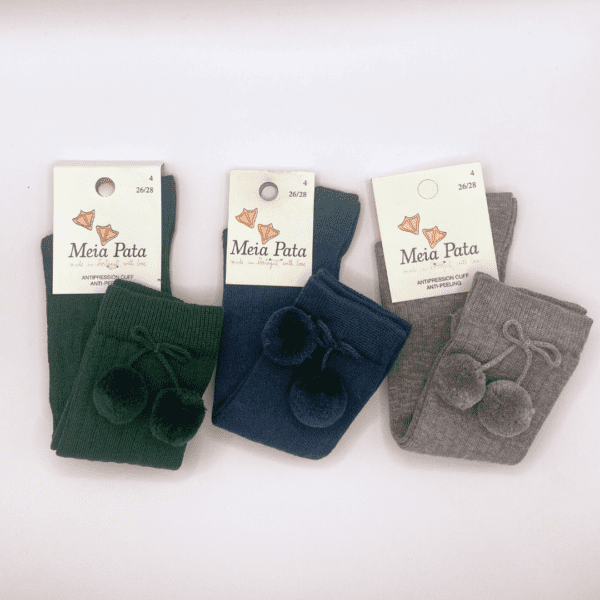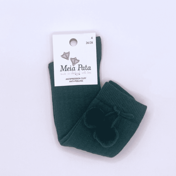 Meia Pata®- Meia canelada pelo joelho c/pompom – Verde Garrafa