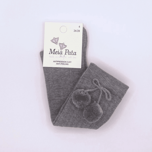 Meia Pata®- Meia canelada pelo joelho c/pompom – Cinza