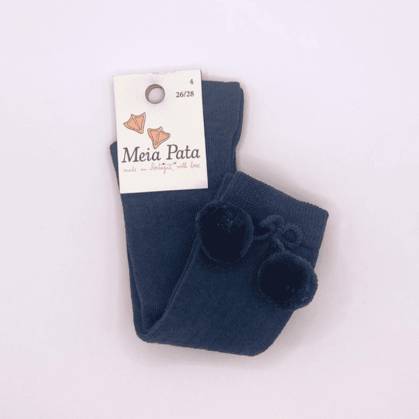 Meia Pata®- Meia canelada pelo joelho c/pompom – Petróleo