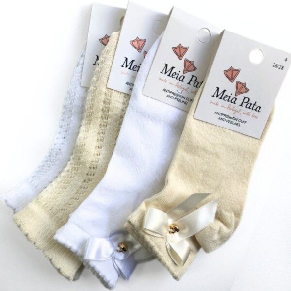 Meia Pata® Meia c/ Laço e Botão – Pérola