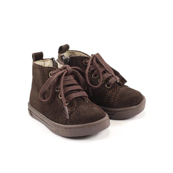 Para um visual desportivo este botim é o modelo ideal! Com o design moderno e casual torna-se a combinação perfeita para o dia-a-dia dos mais pequenos. Possui sola em borracha cosida em todo o contorno, proporcionando extrema durabilidade. Produzidas manualmente em Portugal.