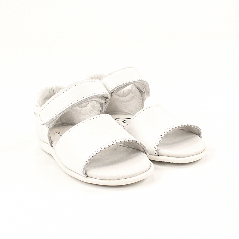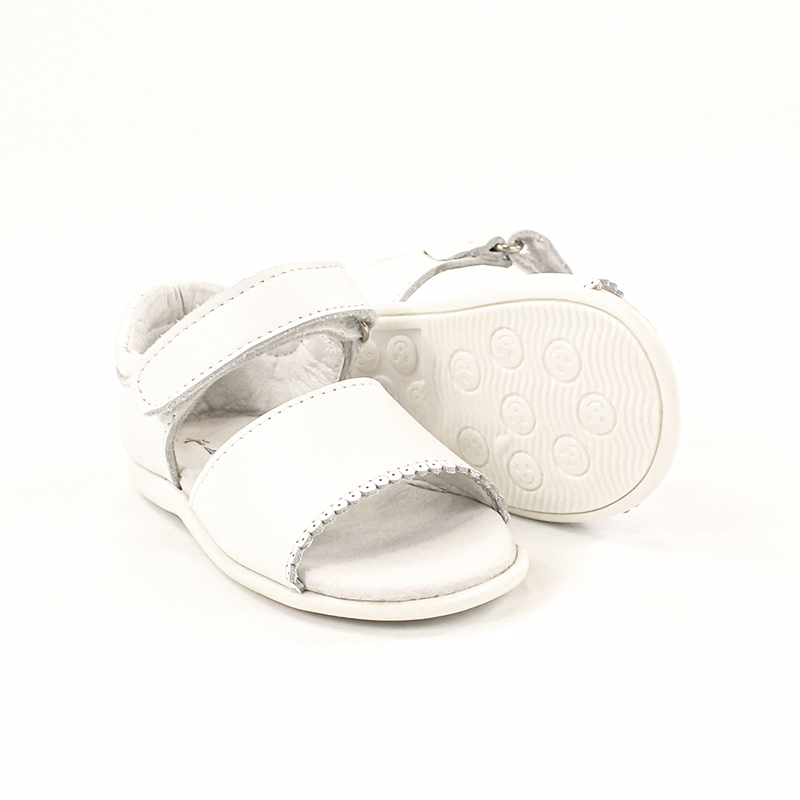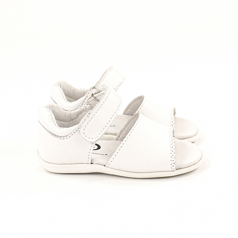 Dê aos seus filhos um verão com conforto e estilo. As nossas sandálias c/ tira – branco de criança com exterior e forro em pele natural e sola em borracha são a escolha perfeita. Com um modelo de tira única com serrilhado e calcanhar fechado, estas sandálias oferecem suporte e estrutura no pé, adequadas para o caminhar dos mais pequenos. Perfeito para os primeiros passos! O design aberto mantém os pés frescos e arejados, enquanto a sola em borracha garante uma excelente aderência a diferentes superfícies. Além disso, o exterior em pele natural proporciona durabilidade e conforto extra. Não espere mais para garantir o melhor para os seus filhos. Compre agora e deixe seus filhos desfrutarem do verão com estilo e segurança.